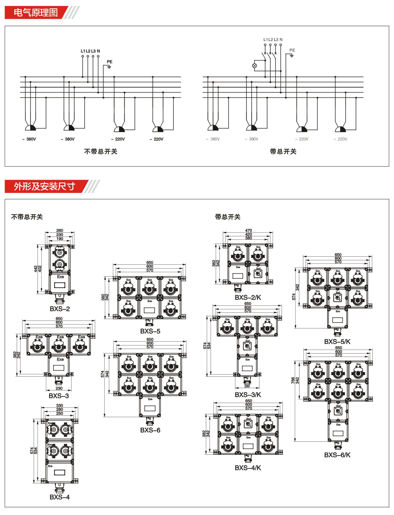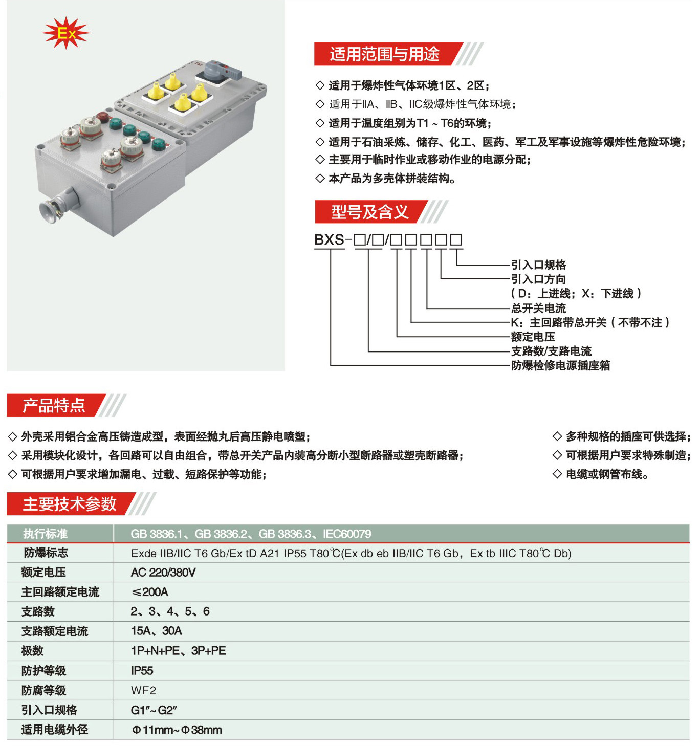 BXS系列防爆检修电源插座箱(IIB、IIC、Ex tD)